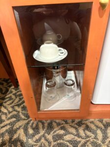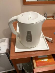 電気ケトルとカップ、グラス類がありました。お湯を沸かしてアメニティコーナーから持ってきたインスタントコーヒーを飲みました。