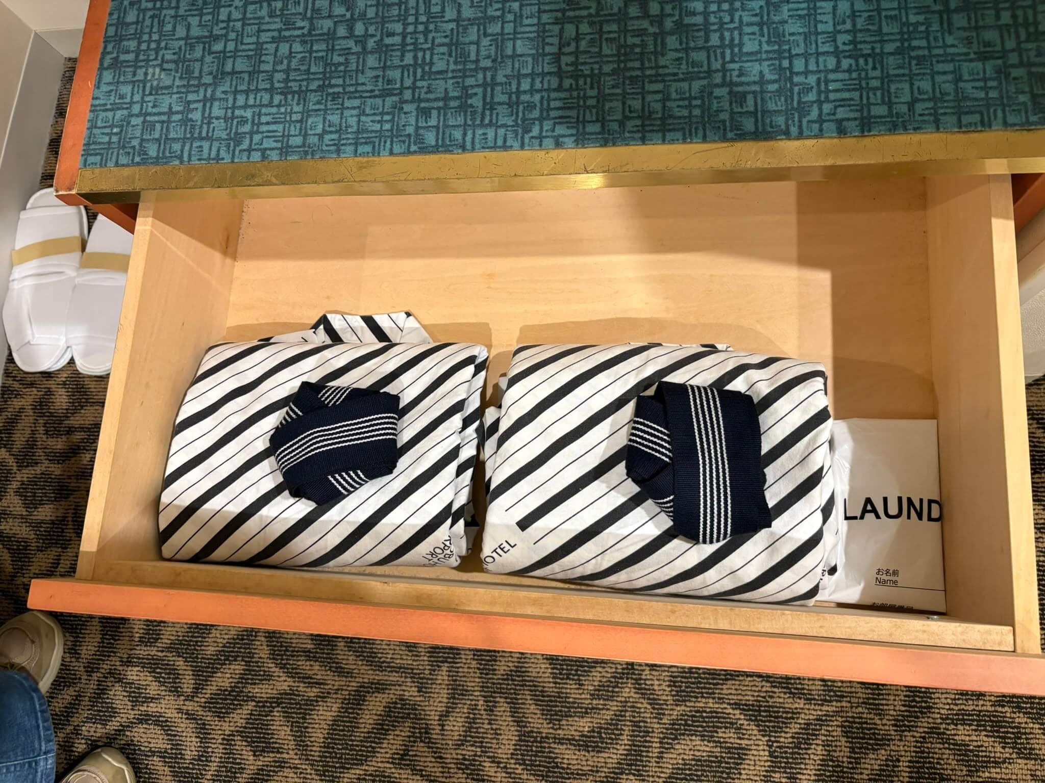 浴衣とスリッパも用意されていました。スリッパは使い捨てタイプでした。