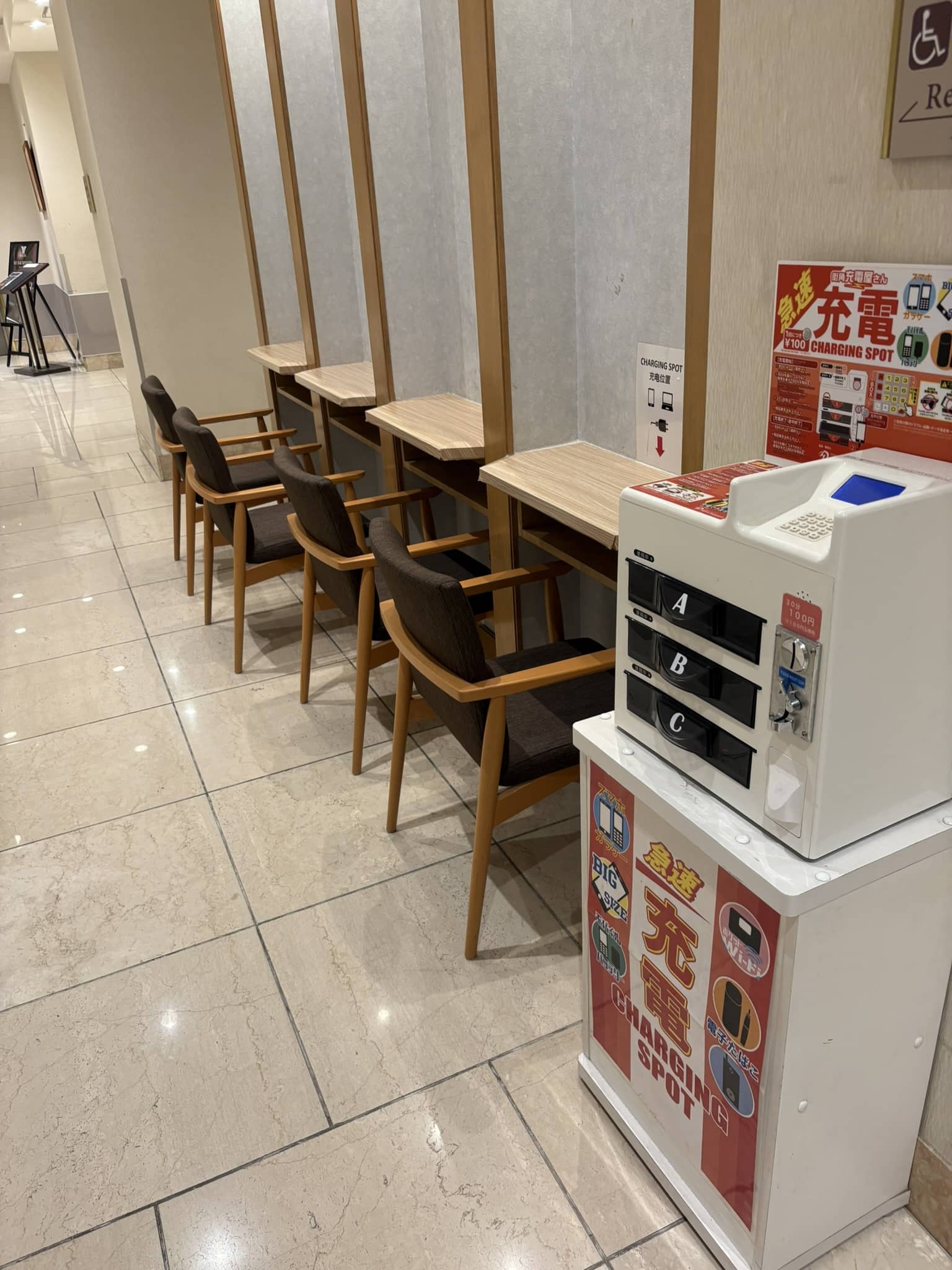 充電コーナーは無料で利用できます。(有料の充電器もありました。)