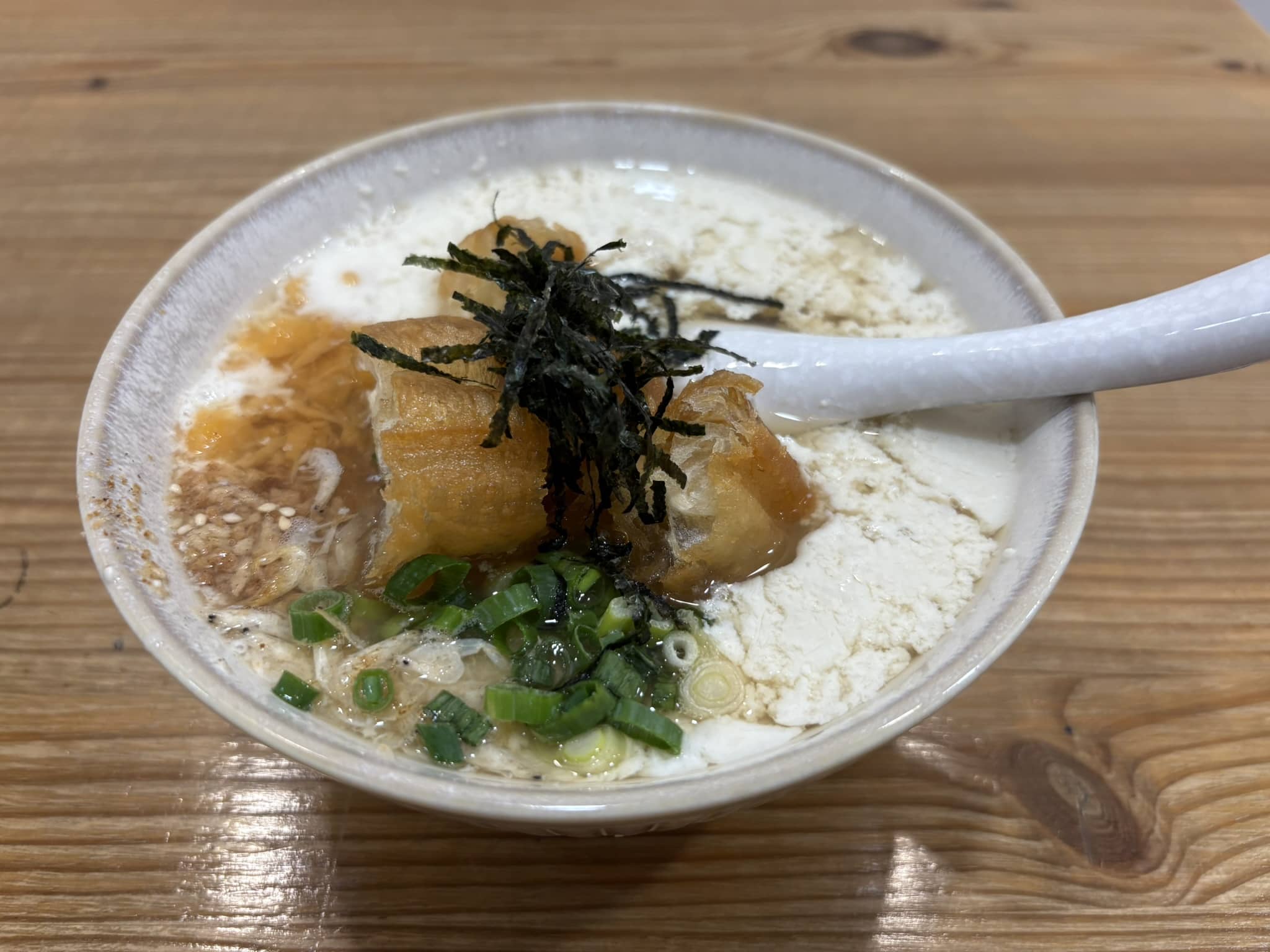 鹹豆漿(シエンドウジャン)は油條(中国式の揚げパン)と小エビやザーサイ、ネギが入っていてちょうどいい塩味でした。